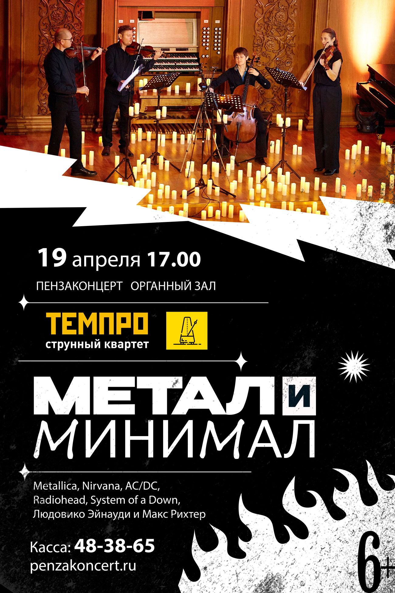 Тяжёлый рок и современный минимализм — контраст, в котором рождается напряжение. В одной программе встречаются жёсткая энергия металла и гипнотизм минимализма. В камерном звучании струнного квартета прозвучат произведения Metallica, Nirvana, AC/DC, Radiohead, System of a Down, а также сочинения представителей неоклассического минимализма — Людовико Эйнауди и Макса Рихтера. Этот концерт про внутреннее напряжение, пульс, ритм и эмоцию, которые одинаково сильны и в металле, и в минимализме.