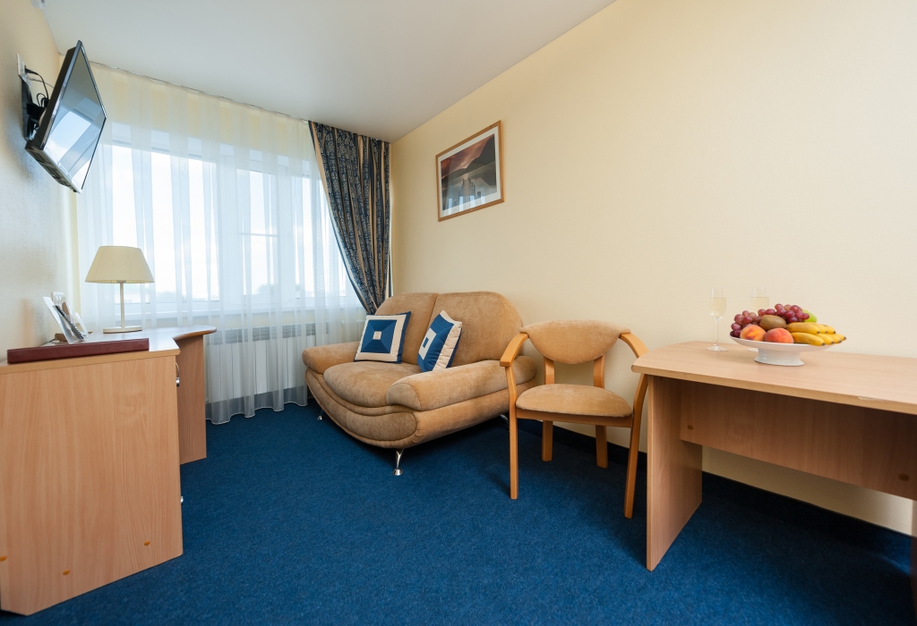 К услугам гостей 97 комфортабельных номера, которые полностью соответствуют всем современным требованиям: удобная мебель и регулируемое освещение, кондиционер, сейф, кабельное телевидение, телефон, сеть беспроводного доступа в Интернет на основе технологии WiFi на всех этажах; в стоимость номера входит: бронь, проживание, завтрак «Шведский стол» в баре «Клуб путешественников»; ванная комната оснащена феном, комплектом гигиенической продукции, комплектом полотенец, халатом и тапочками.