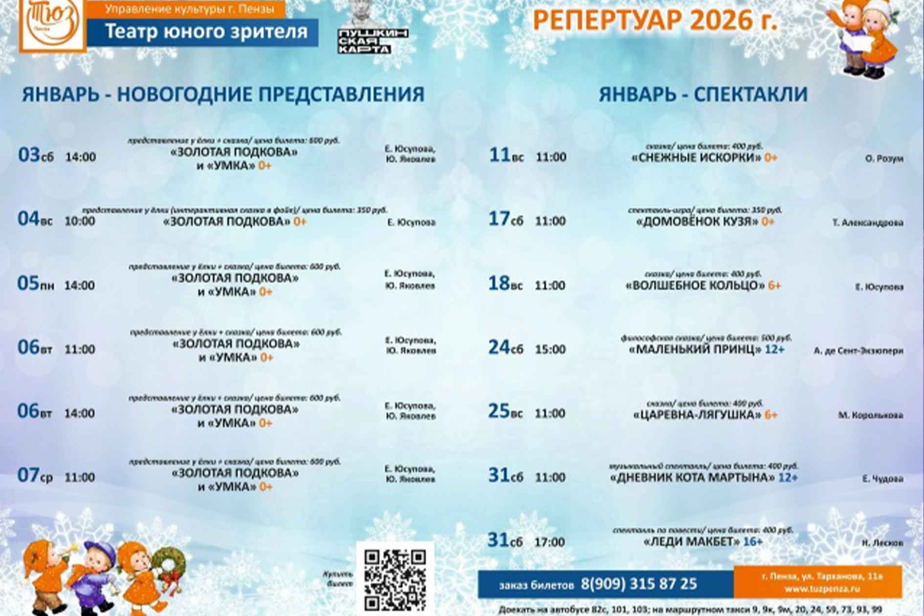 Афиша Пензенского ТЮЗа на январь 2026 г.